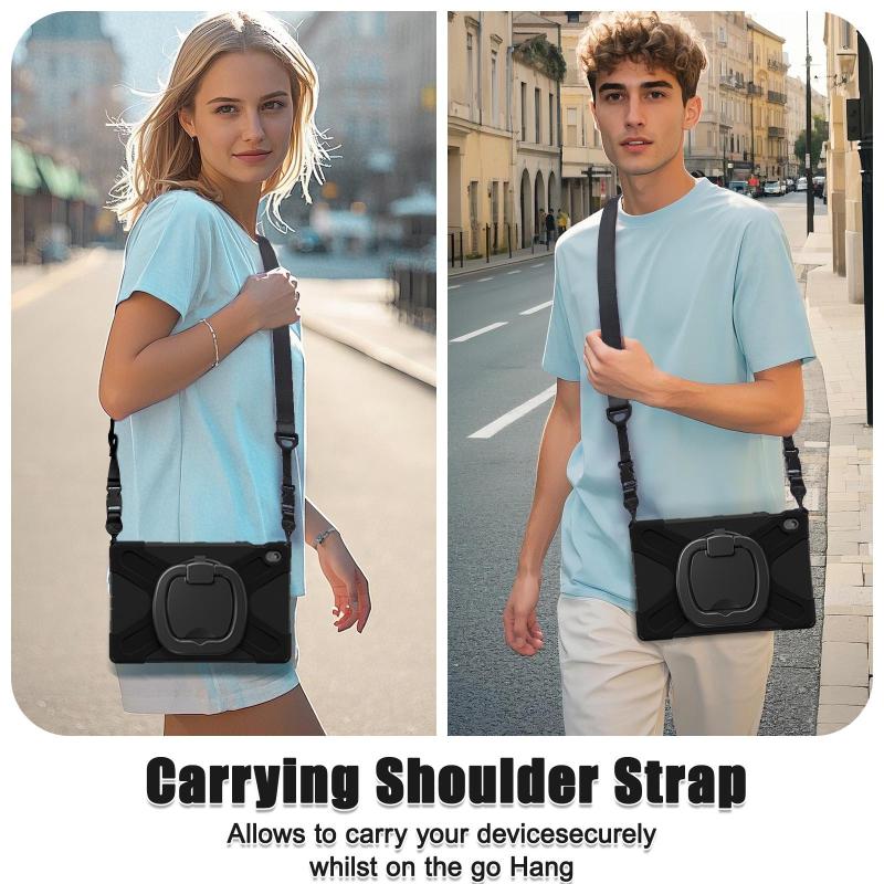 6. Detachable Shoulder Strap: The adjustable hand strap provides easy and comfortable grip, a must-have feature when you are presenting your tablet to others. The detachable and adjustable shoulder strap can help you carry your tablet more safely while hiking, traveling and other outdoor activities. This can also be used to secure your tablet to the car seat.