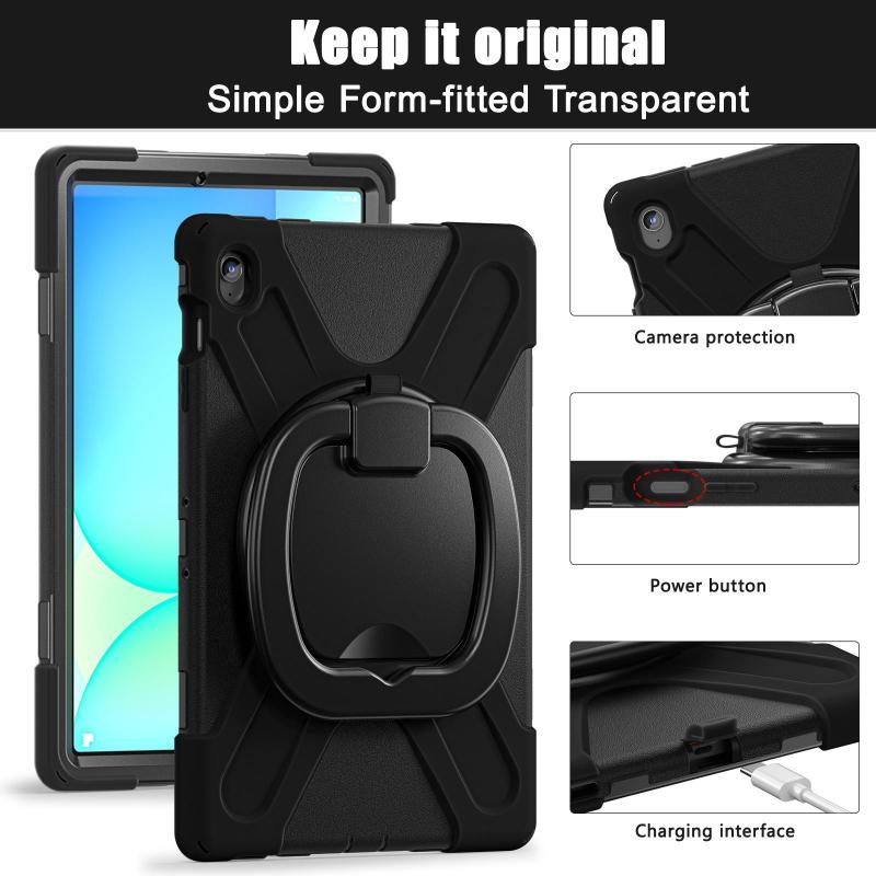 For Samsung Galaxy Tab S10 FE+ Silicone Hybrid PC Tablet Case with Holder & Shoulder Strap(Black)