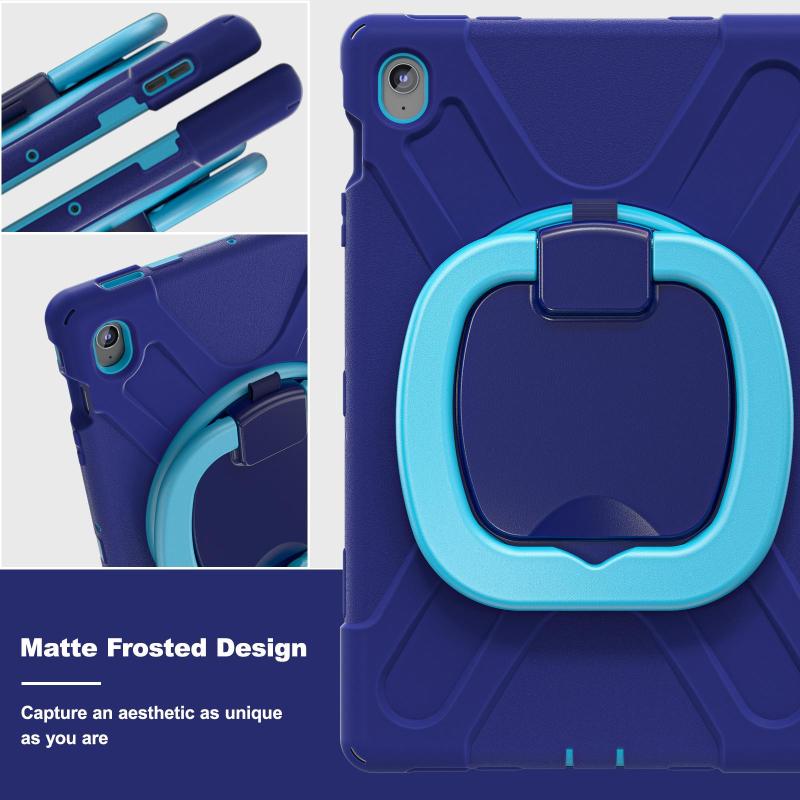 For Samsung Galaxy Tab S10 FE+ Silicone Hybrid PC Tablet Case with Holder & Shoulder Strap(Navy Blue Blue)
