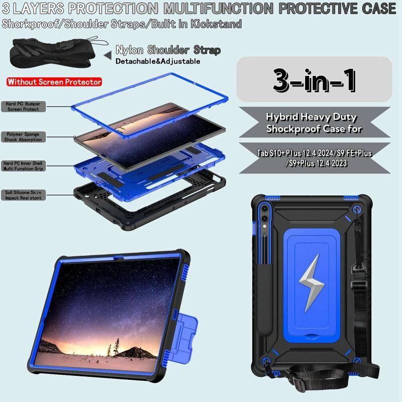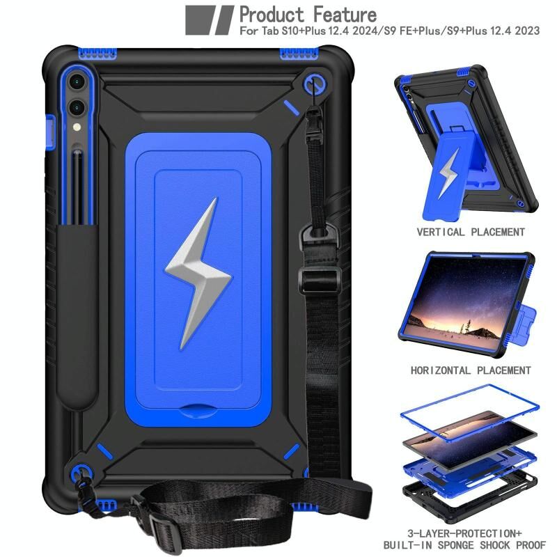 For Samsung Galaxy Tab S10+ / S9+ Armor Bolt Shape Holder Silicone Hybrid PC Tablet Case(Black Blue)