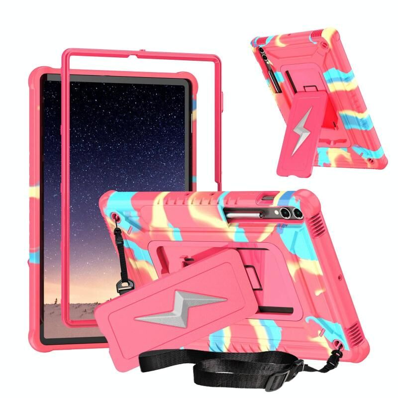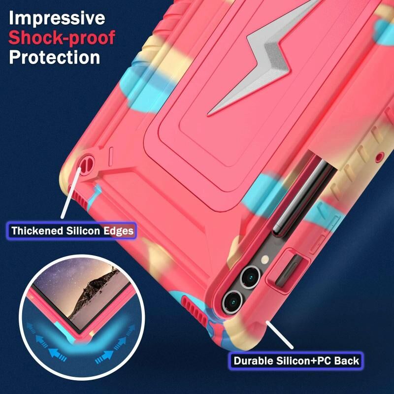 For Samsung Galaxy Tab S10+ / S9+ Armor Bolt Shape Holder Silicone Hybrid PC Tablet Case(Camouflage Rose Red)