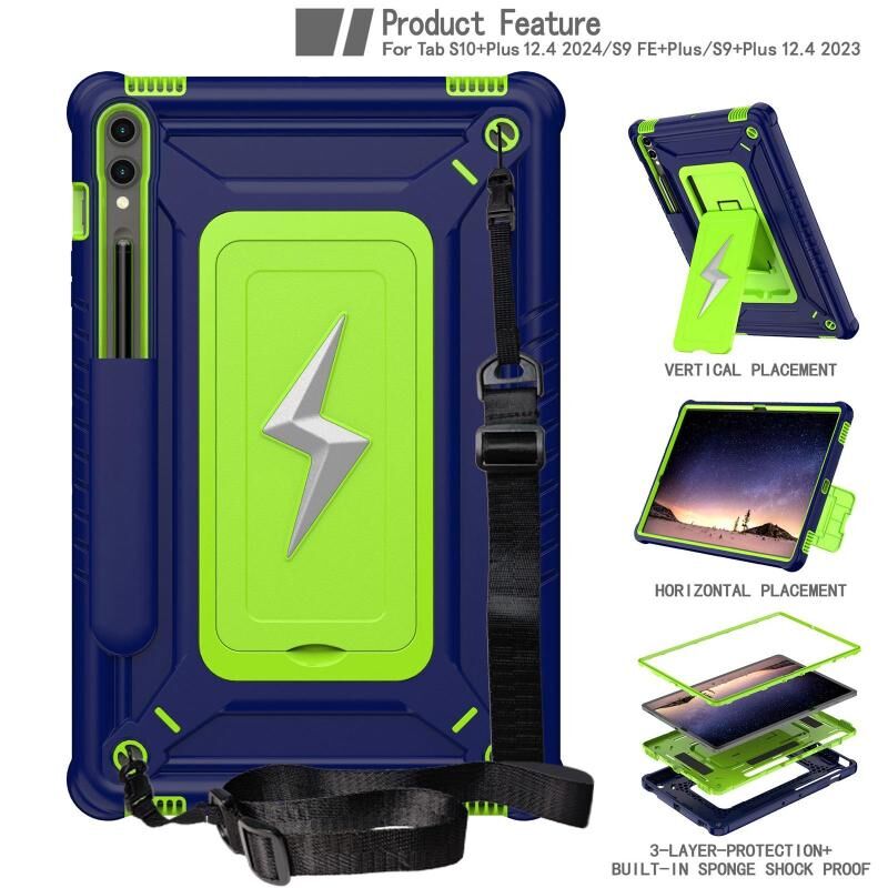For Samsung Galaxy Tab S10+ / S9+ Armor Bolt Shape Holder Silicone Hybrid PC Tablet Case(Navy Blue Olivine)