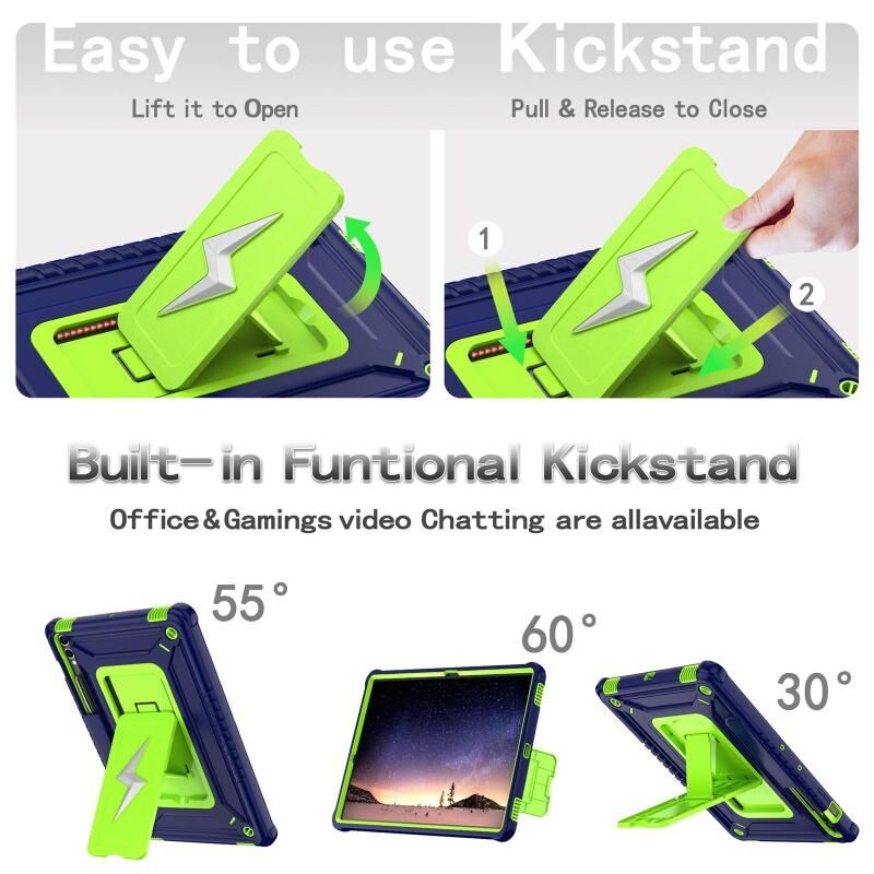 2. Handle Grip Stand Function: 360 degree rotating stand that offers multiple angle stands for enjoying the most comfortable keyboard-typing and movie-viewing.