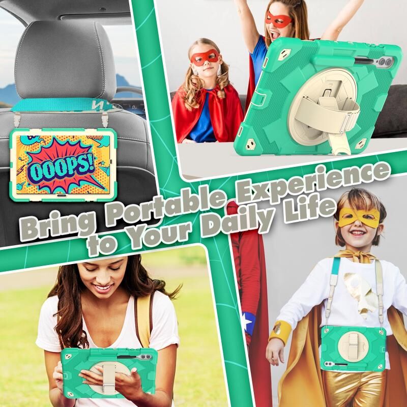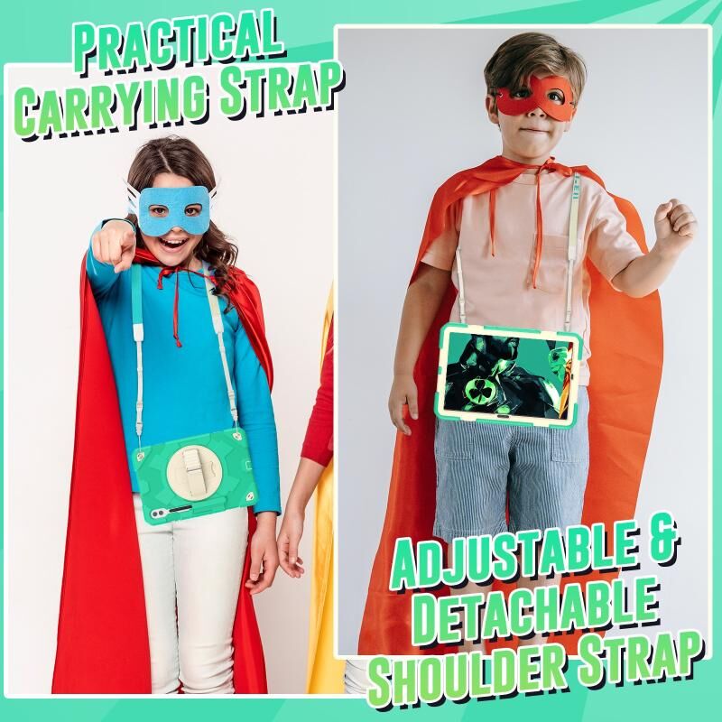 6. Detachable Shoulder Strap: The adjustable hand strap provides easy and comfortable grip, a must-have feature when you are presenting your tablet to others. The detachable and adjustable shoulder strap can help you carry your tablet more safely while hiking, traveling and other outdoor activities. This can also be used to secure your tablet to the car seat.