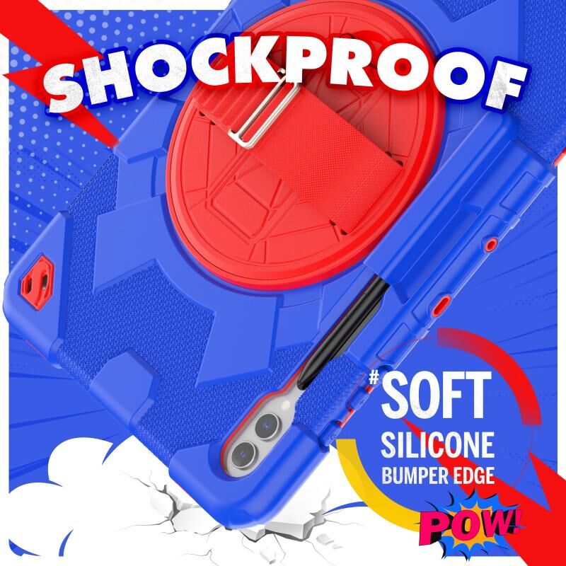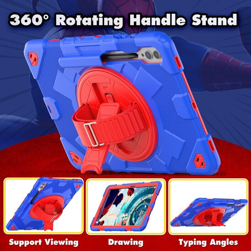 For Samsung Galaxy Tab S10+ / S9+ / S9 FE+ Spider Hand Grip Turntable Stand Tablet Case(Red Blue)