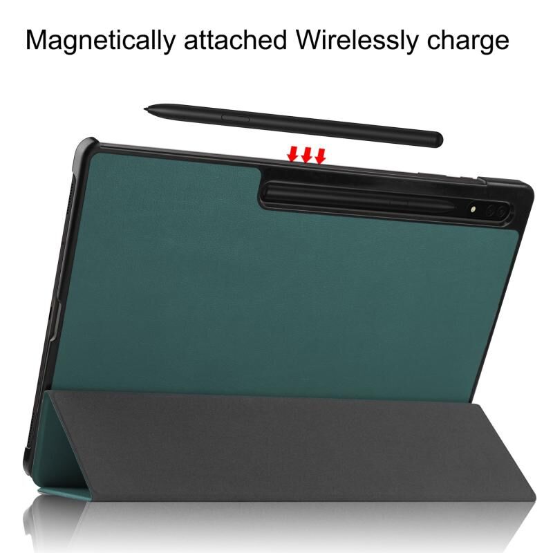 For Samsung Galaxy Tab S10 Ultra / S9 Ultra Custer Pure Color 3-Fold Holder Smart Leather Tablet Case(Dark Green)