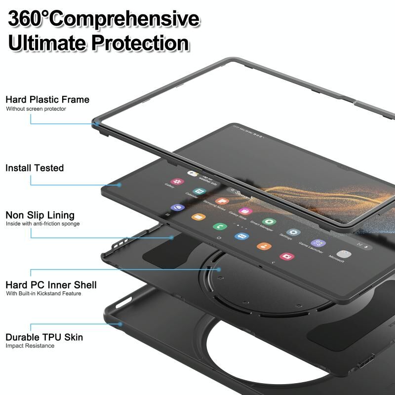 For Samsung Galaxy Tab S10 Ultra / S9 Ultra / S8 Ultra 360 Rotation Handle Grip TPU + PC Tablet Case(Black)