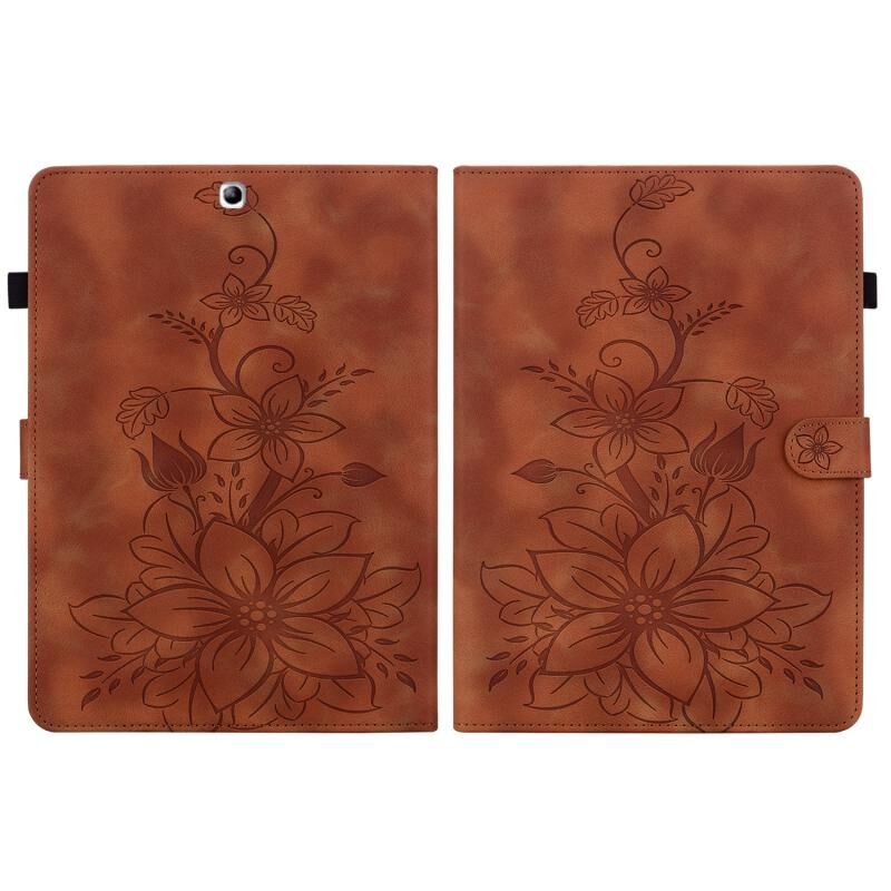 Θήκη δερμάτινη με ανάγλυφο σχέδιο Lily για Samsung Galaxy Tab S2 9.7 T810 T815 (Καφέ)