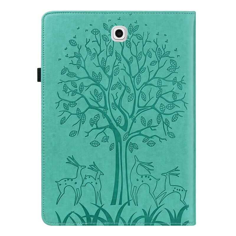 Θήκη Samsung Galaxy Tab S2 9.7 με σχέδιο Δέντρου & Ελαφιού, εκτυπωμένη με θερμοτύπωση, οριζόντια, από δερματίνη PU με βάση & θήκες για κάρτες (Μωβ)