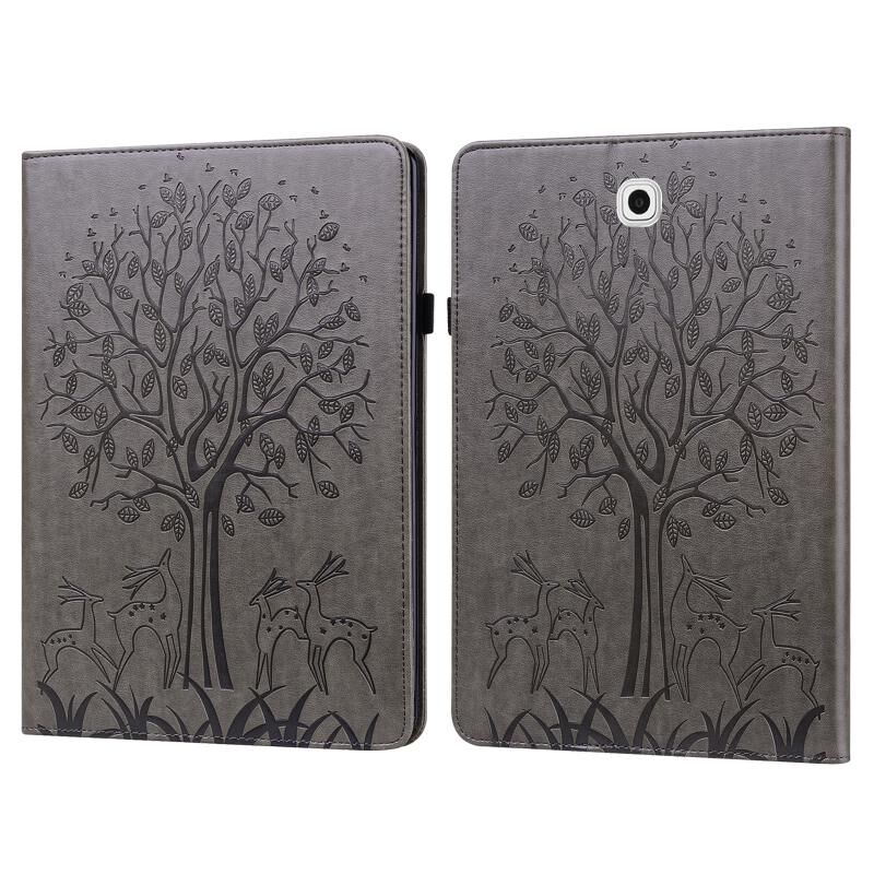 For Samsung Galaxy Tab S2 9.7 Tree & Deer Pattern Pressed Printing Horizontal Flip PU Leather Case with Holder & Card Slots(Grey)