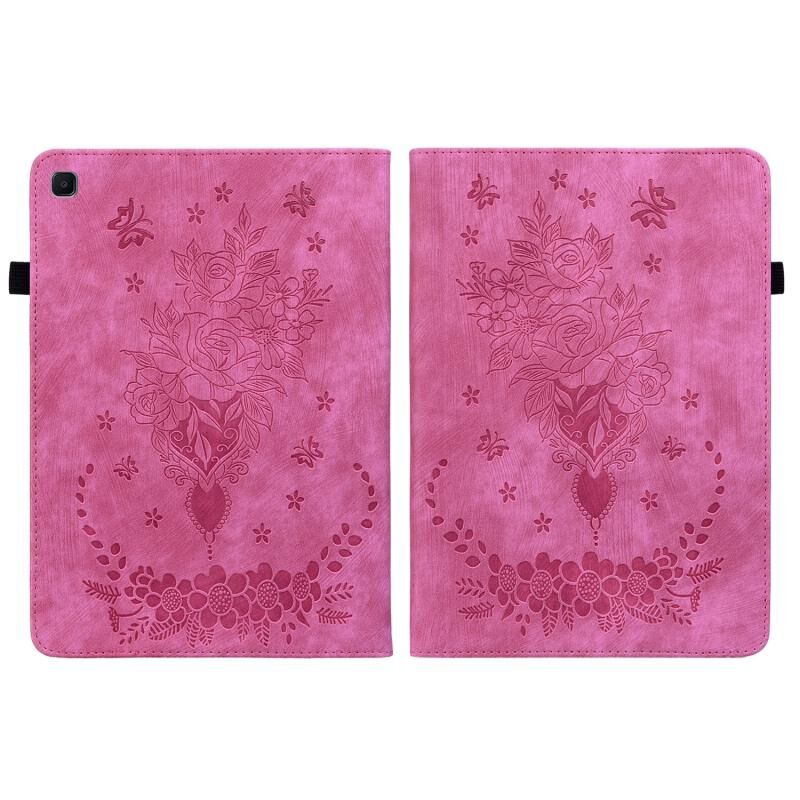 Θήκη ταμπλέτας από δέρμα με ανάγλυφο σχέδιο πεταλούδας για Samsung Galaxy Tab S5e/T720/T725 (Ροζ)