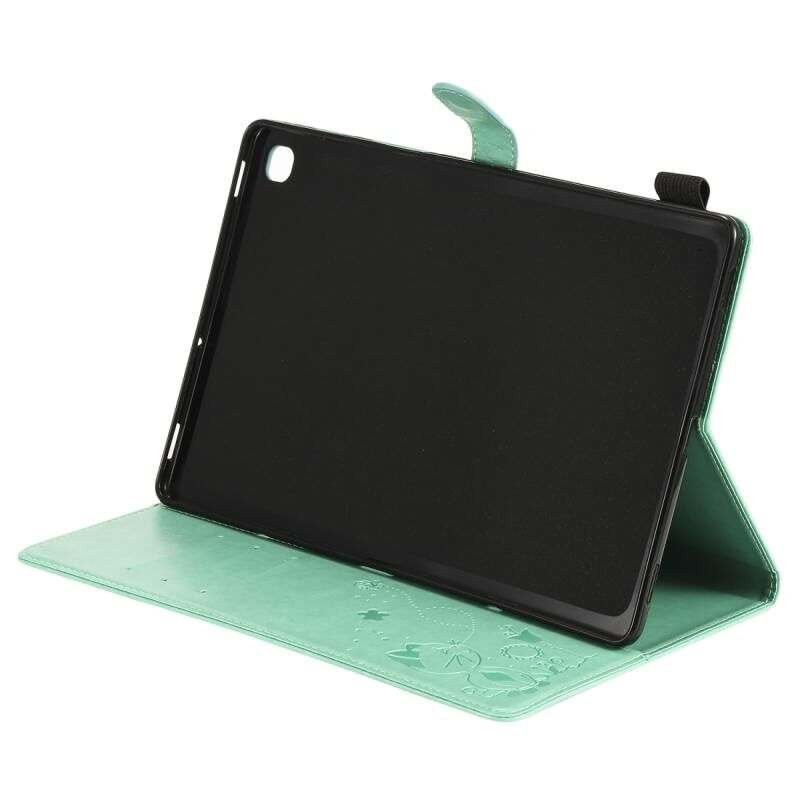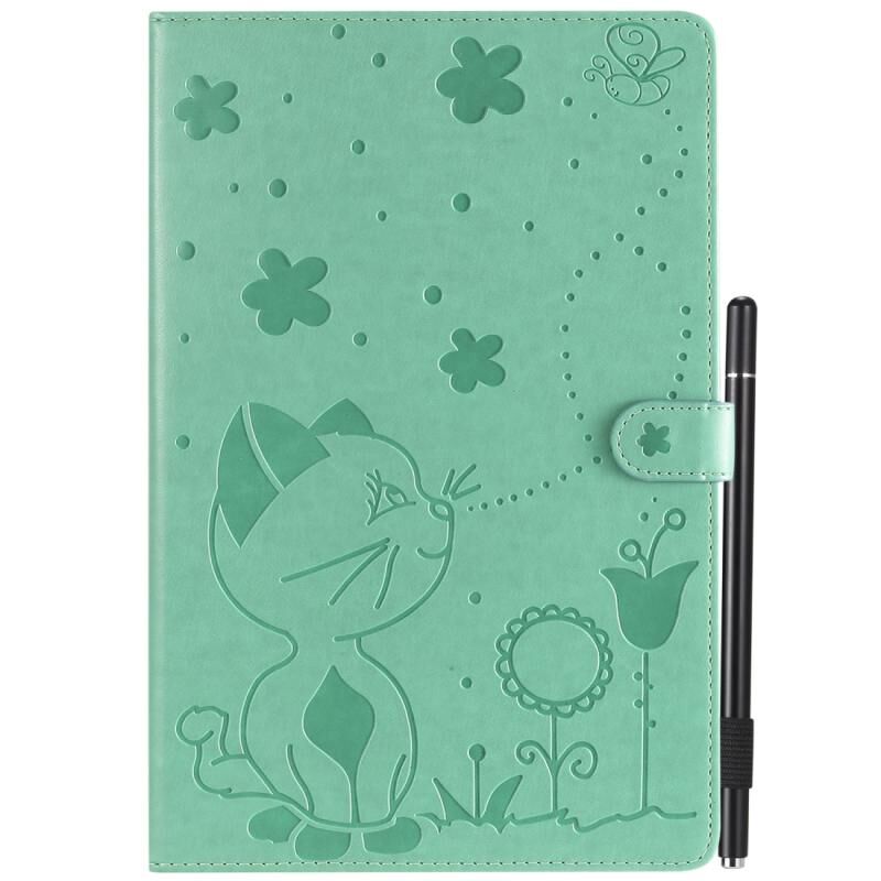 Θήκη δερμάτινη οριζόντια, με αναγλυφία Cat Bee, αντικραδασμική, για Samsung Galaxy Tab S5e T720 / T725, με βάση στήριξης, θήκες καρτών, πορτοφόλι, θήκη στυλό & λειτουργία αφύπνισης / ύπνου (Πράσινη)