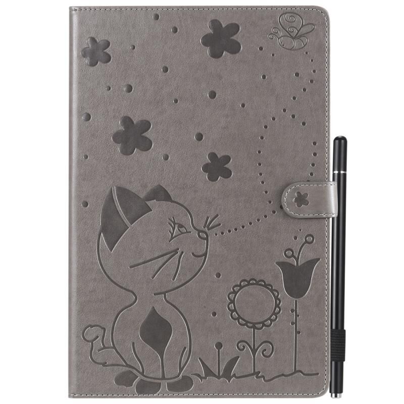 Θήκη δερμάτινη οριζόντια, με αναγλυφία Cat Bee, αντικραδασμική, για Samsung Galaxy Tab S5e T720 / T725, με βάση στήριξης, θήκες καρτών, πορτοφόλι, θήκη στυλό & λειτουργία αφύπνισης / ύπνου (Πράσινη)