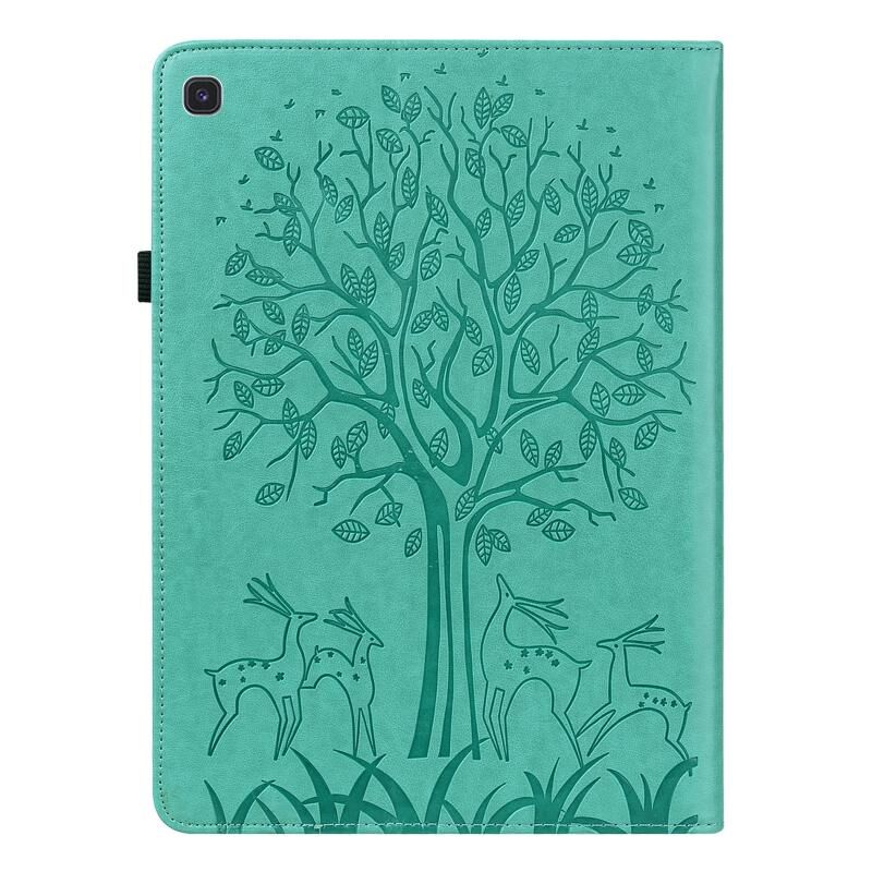 Για Samsung Galaxy Tab S5e δέντρο & ελάφια μοτίβο ανάγλυφο δέρμα Tablet υπόθεση (πράσινο)