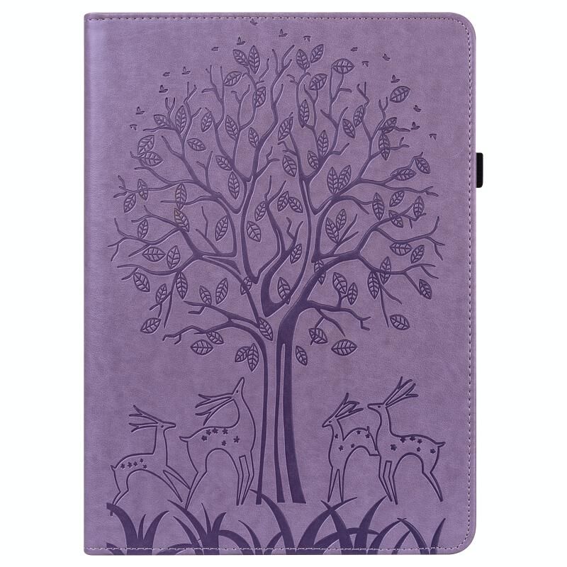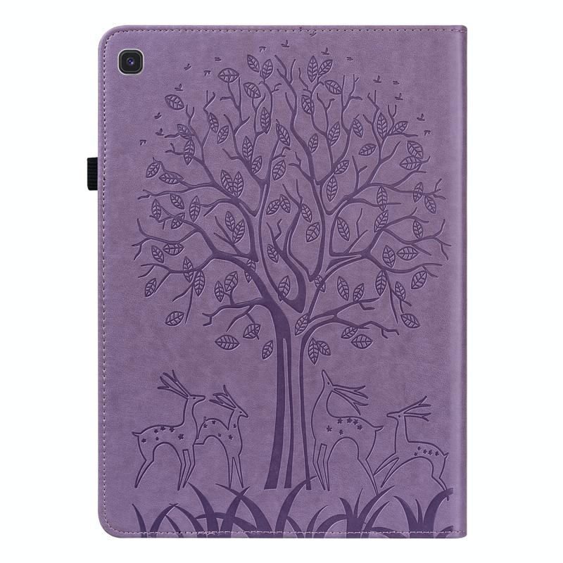 Θήκη δερματίνης για Samsung Galaxy Tab S5e με ανάγλυφο σχέδιο δέντρου & ελαφιού (Μωβ)