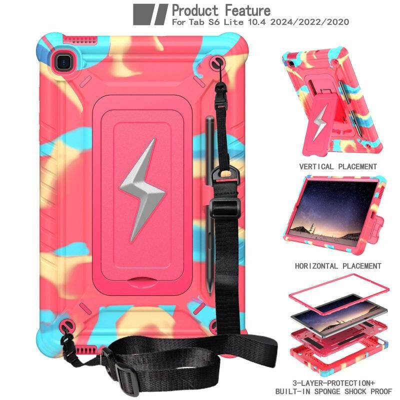 For Samsung Galaxy Tab S6 Lite 2020 / 2024 Armor Bolt Shape Holder Silicone Hybrid PC Tablet Case(Camouflage Rose Red)