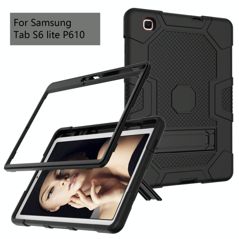 Θήκη προστασίας για Samsung Galaxy Tab S6 Lite P610, αντιολισθητική, αντικραδασμική, σιλικόνης + PC, σε συνδυασμό χρωμάτων (Μωβ-Μέντα) με βάση στήριξης.