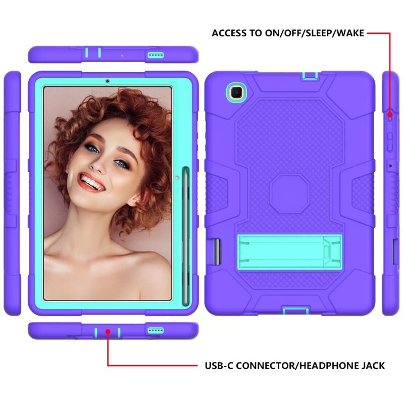 Θήκη προστασίας για Samsung Galaxy Tab S6 Lite P610, αντιολισθητική, αντικραδασμική, σιλικόνης + PC, σε συνδυασμό χρωμάτων (Μωβ-Μέντα) με βάση στήριξης.