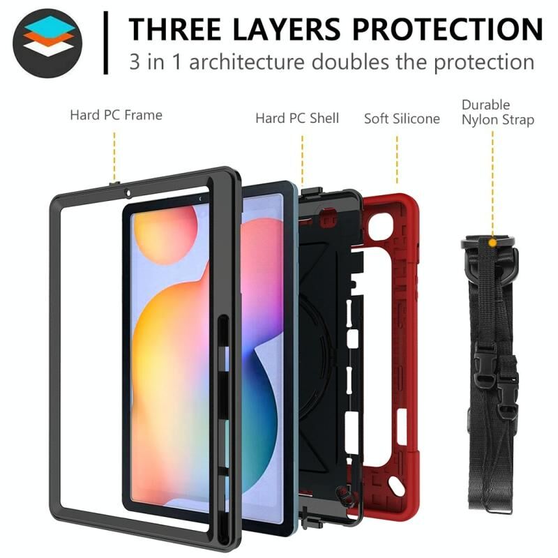 Για Samsung Galaxy Tab S6 Lite P610 Αντίθεση Χρώμα ρομπότ σιλικόνης + PC Tablet υπόθεση (κόκκινο μαύρο)
