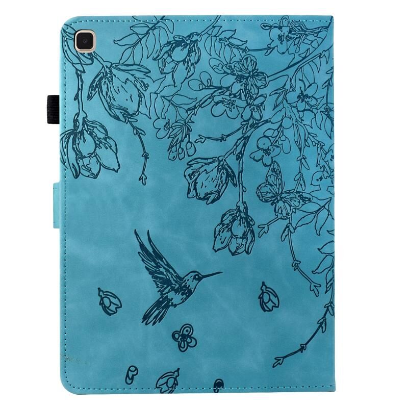 Θήκη για Samsung Galaxy Tab S6 Lite P610 με ανάγλυφα σχέδια λουλουδιών και πουλιών, από έξυπνο δέρμα (Μαύρο)