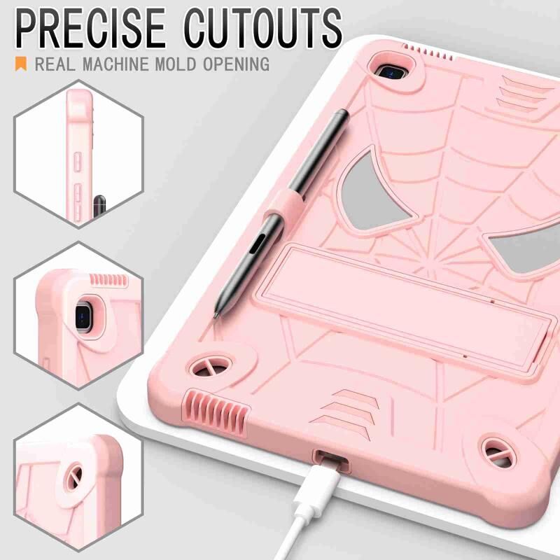 For Samsung Galaxy Tab S6 Lite P610 Spider Texture Silicone Hybrid PC Tablet Case with Shoulder Strap(Rose Gold)