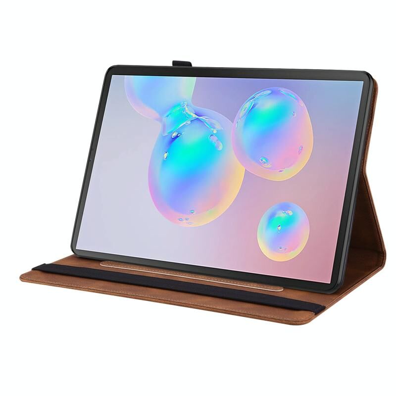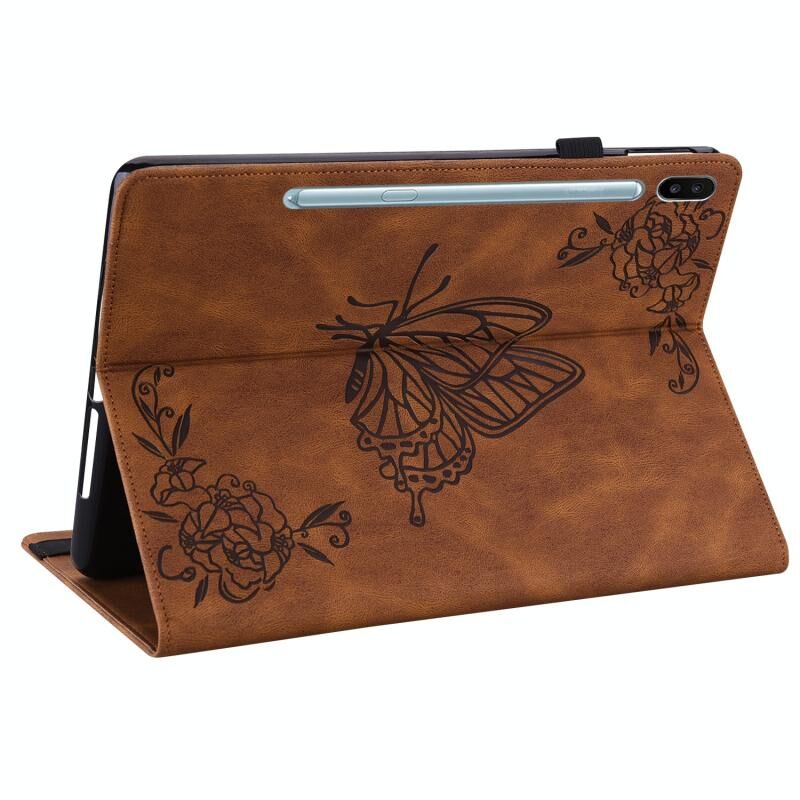Θήκη δερμάτινη με ανάγλυφο σχέδιο πεταλούδας και λουλουδιών για Samsung Galaxy Tab S6 SM-T860/T865, χωρίς στυλό (Καφέ)