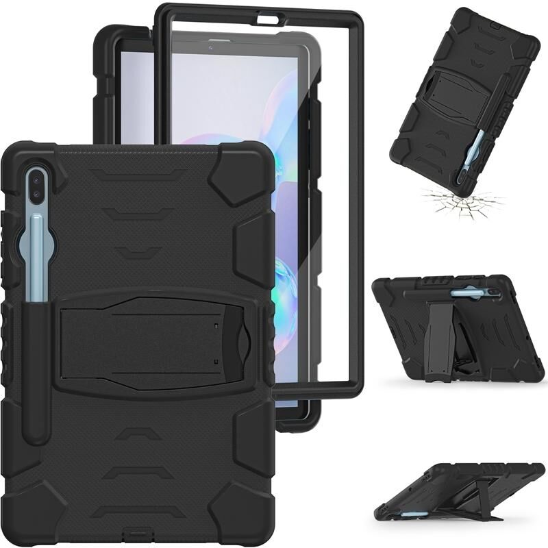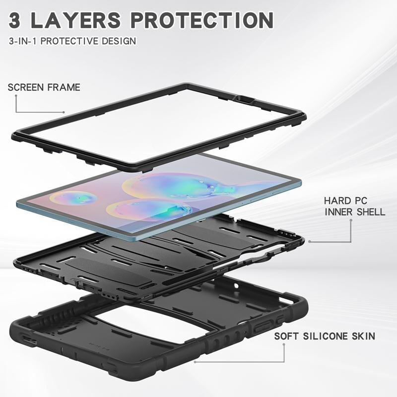 For Samsung Galaxy Tab S6 T860 3-Layer Protection Screen Frame + PC + Silicone Shockproof Combination Case with Holder(Black+Black)