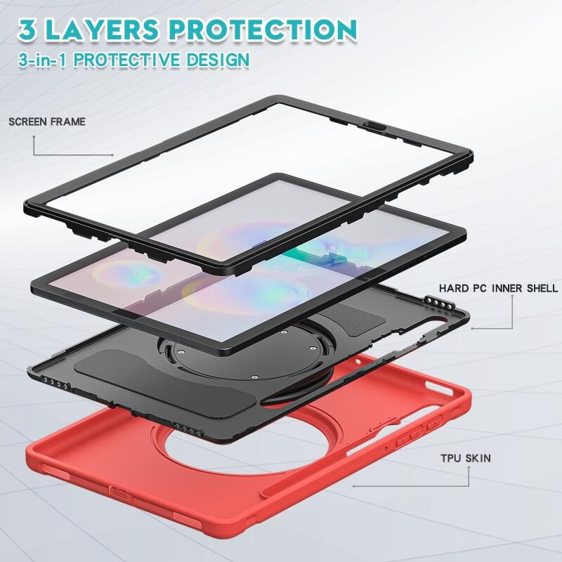 Θήκη προστασίας για Samsung Galaxy Tab S6 T860 από ανθεκτικό TPU + PC με περιστρεφόμενη λαβή 360 μοιρών και υποδοχή για στυλό (Κόκκινο)