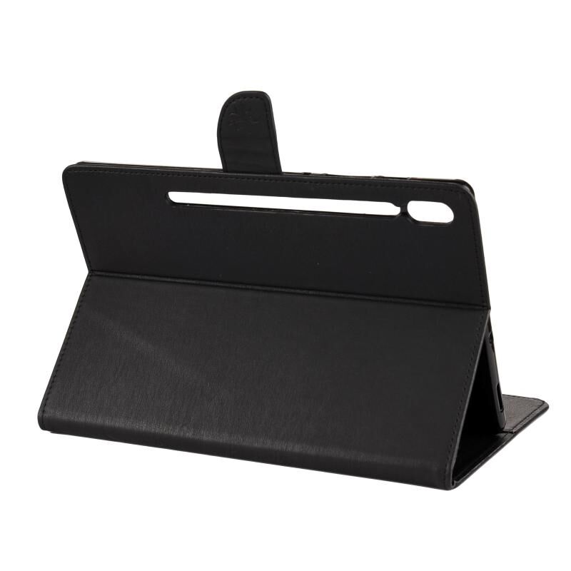 Θήκη δέρματος οριζόντιας αναδίπλωσης με ανάγλυφο σχέδιο πεταλούδας και λουλουδιών για Samsung Galaxy Tab S6 T860 / T865 με βάση στήριξης & υποδοχές καρτών & πορτοφόλι (Μαύρο)
