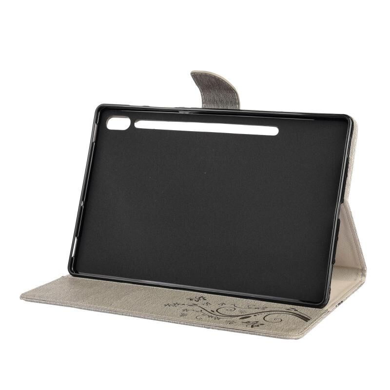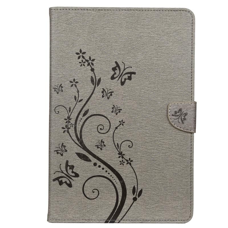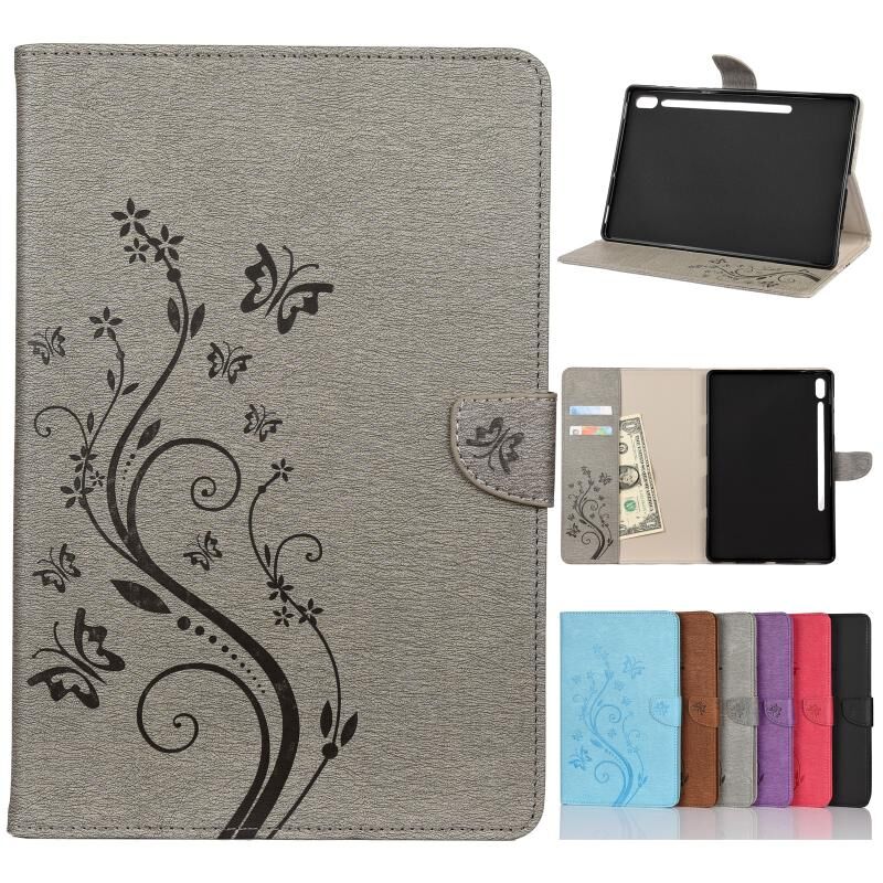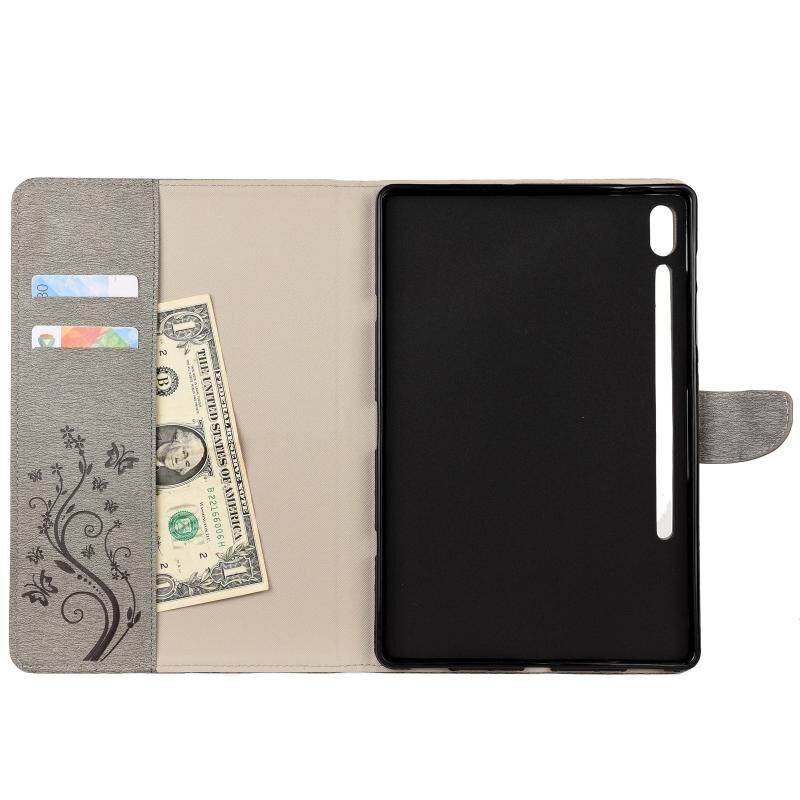 Θήκη δέρματος οριζόντιας αναδίπλωσης με ανάγλυφο σχέδιο πεταλούδας και λουλουδιών για Samsung Galaxy Tab S6 T860 / T865 με βάση στήριξης & υποδοχές καρτών & πορτοφόλι (Μαύρο)