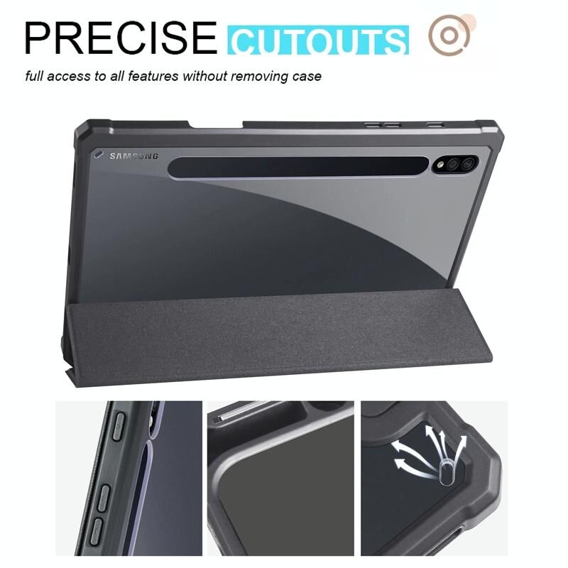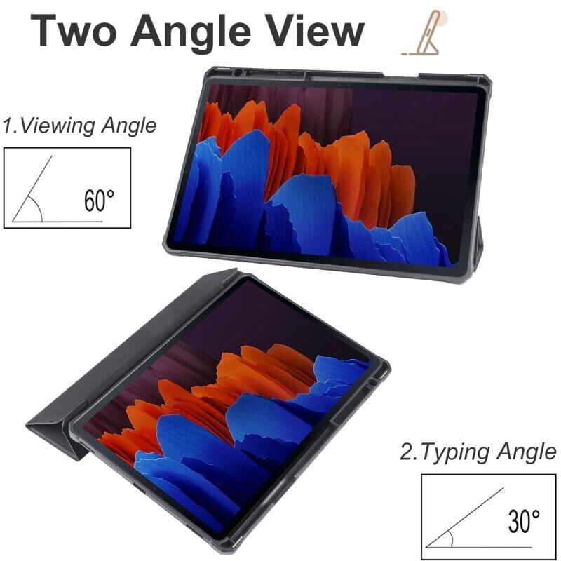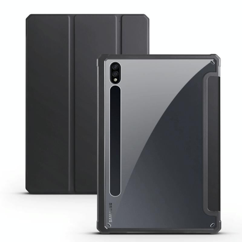 Για Samsung Galaxy Tab S7+ Ακρυλικό 3 πτυσσόμενο Smart δερμάτινη θήκη tablet (Μαύρο)
