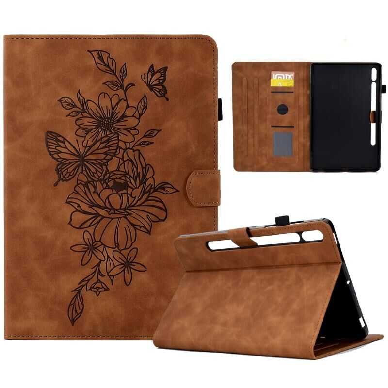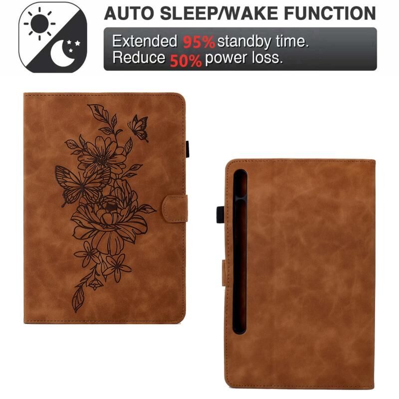 Θήκη Smart Tablet από Δέρμα με ανάγλυφο σχέδιο Παιονίας και Πεταλούδας για Samsung Galaxy Tab S7 / S8 (Καφέ)
