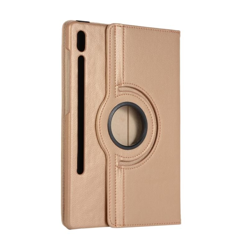 Για Samsung Galaxy Tab S7 T870 2020 / Tab S8 Θήκη Δέρματος με Υφή Λίτσι, Οριζόντια, Περιστροφή 360 Μοιρών με Στήριξη (Χρυσό)