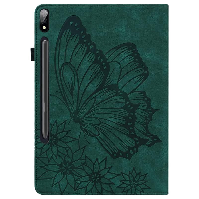 Θήκη ταμπλέτας Samsung Galaxy Tab S7 T870 από δέρμα με ανάγλυφο σχέδιο πεταλούδας (Πράσινο)