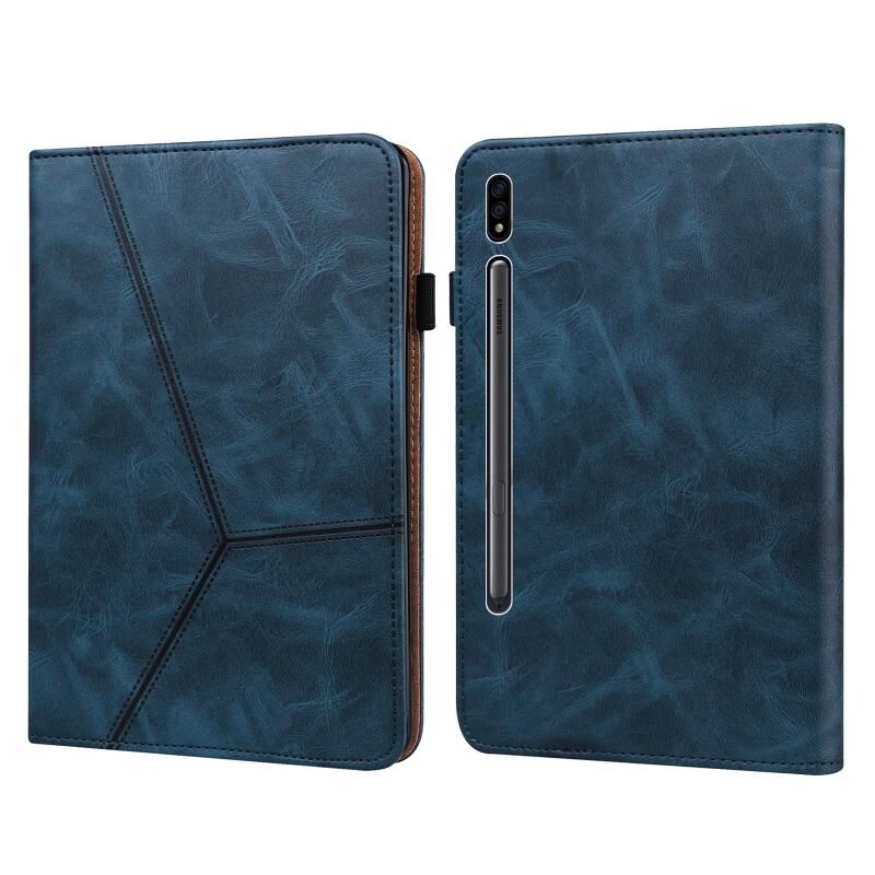 Για Samsung Galaxy Tab S7+ T970 / S7 FE T730 Αμιγές χρώμα ανάγλυφη ριγέ δερμάτινη θήκη tablet (μπλε)