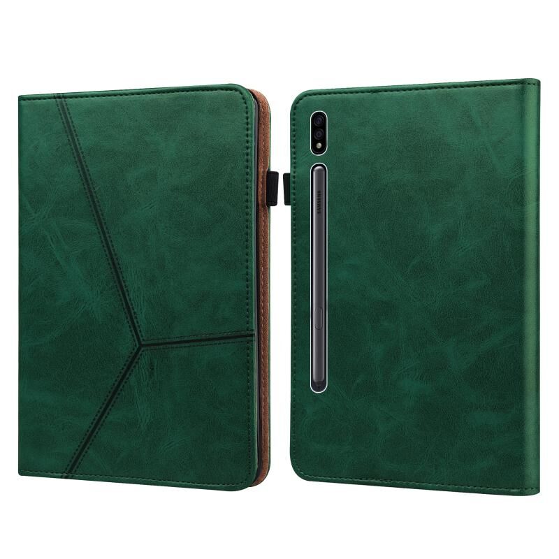 Για Samsung Galaxy Tab S7+ T970 / S7 FE T730 Αμιγές χρώμα ανάγλυφη ριγέ δερμάτινη θήκη tablet (πράσινο)