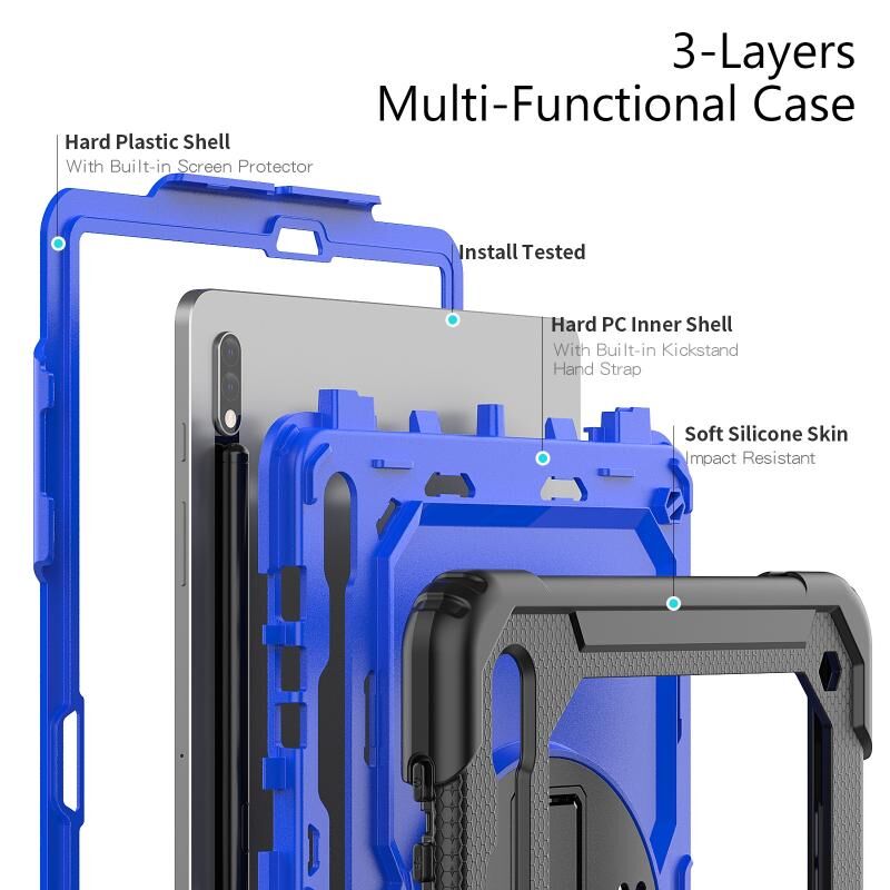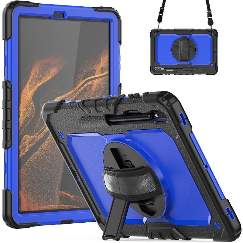 Για Samsung Galaxy Tab S8+ 12.4 ιντσών SM-X800 σιλικόνη + PC θήκη tablet με λουράκι ώμου (μαύρο + σκούρο μπλε)