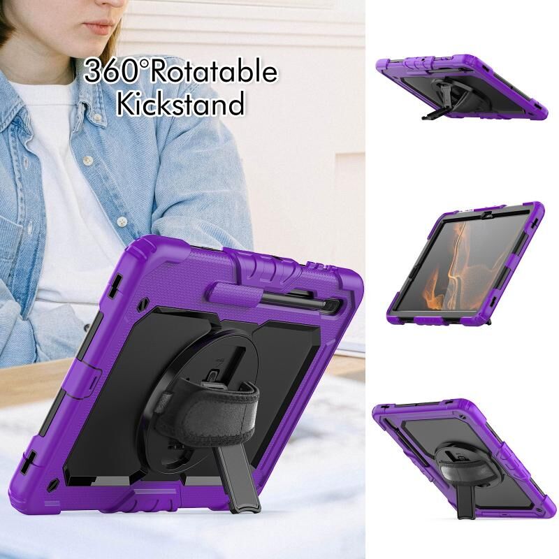 Για Samsung Galaxy Tab S8+ 12.4 ιντσών SM-X800 σιλικόνη + PC θήκη tablet με λουράκι ώμου (μωβ+μαύρο)