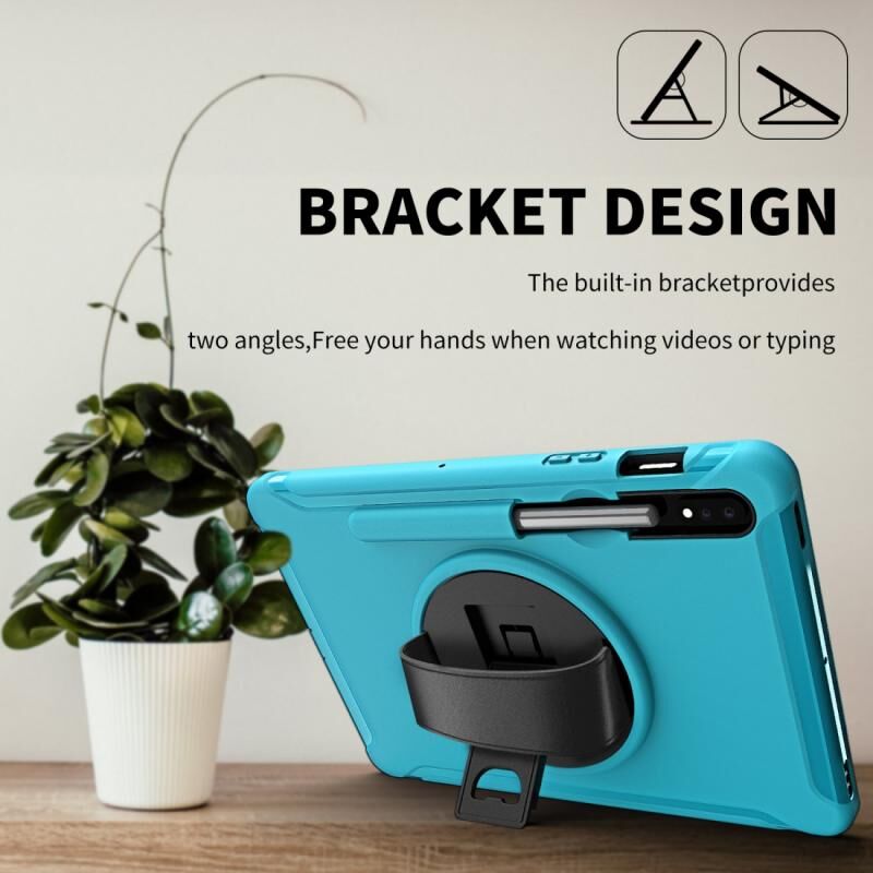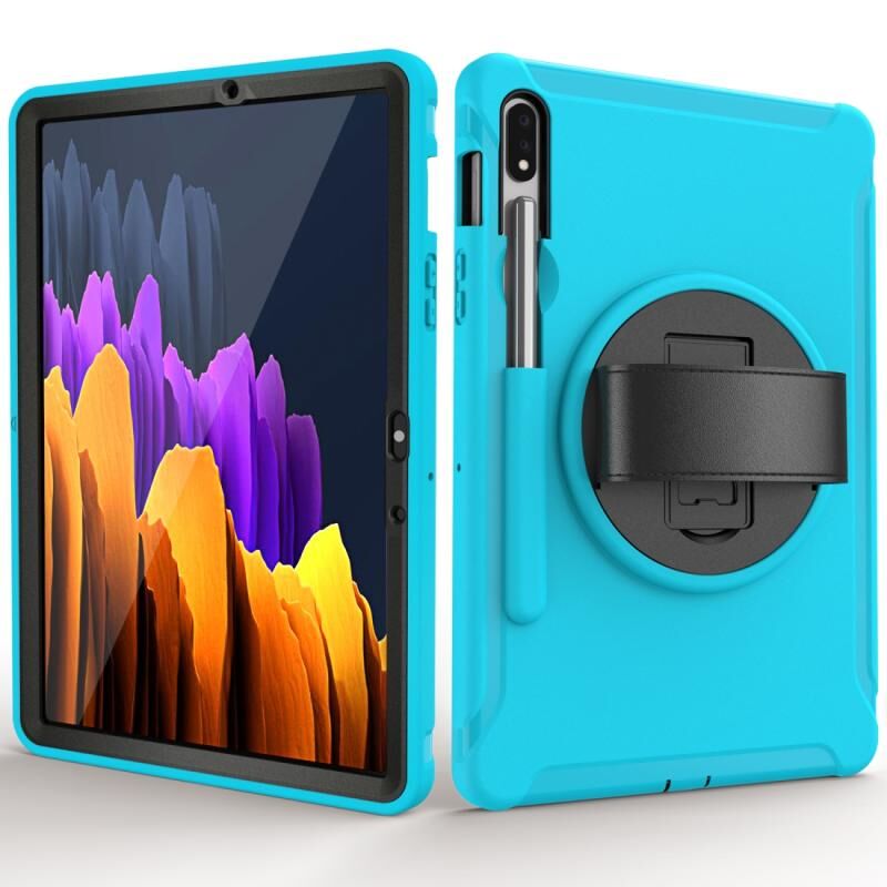 Για Samsung Galaxy Tab S8 / Galaxy Tab S7 (2020) T870 Προστατευτική θήκη PC+TPU με περιστροφή 360 μοιρών και βάση στήριξης & λουρί χειρός (Μπλε)