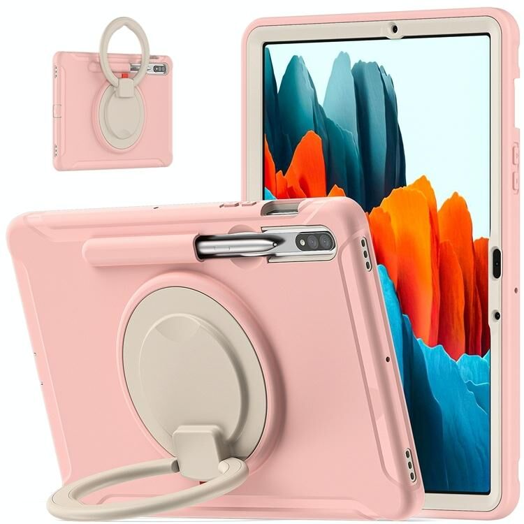 Για Samsung Galaxy Tab S8 / Galaxy Tab S7 870 Αδιάβροχη θήκη TPU + PC με 360 μοίρες περιστροφή Πτυσσόμενη λαβή λαβής & υποδοχή για στυλό (Cherry Blossoms Pink)