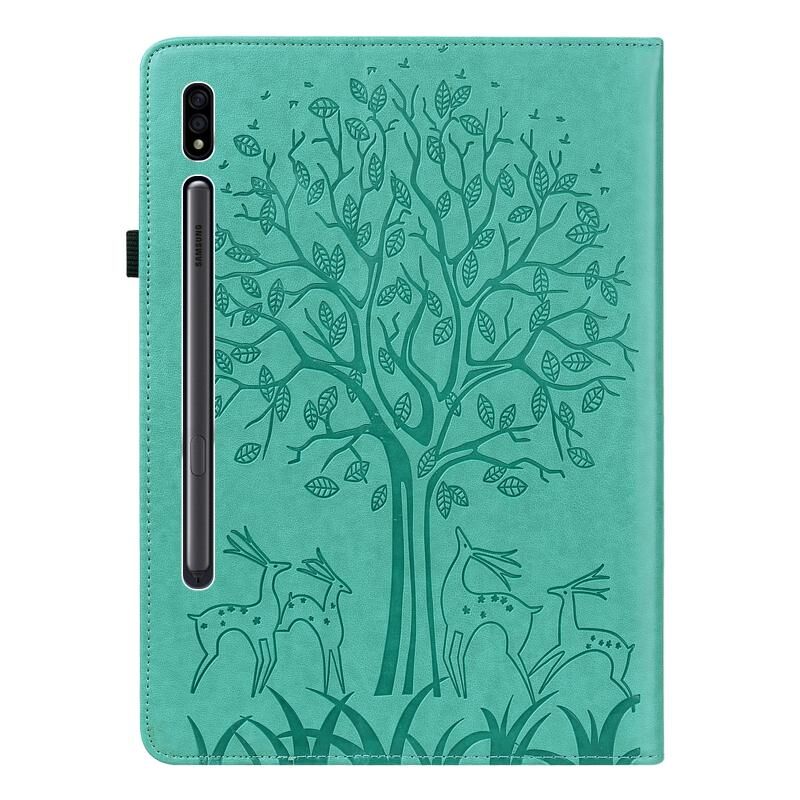 Θήκη για Samsung Galaxy Tab S8 / Galaxy Tab S7 SM-T870 με σχέδιο Δέντρου & Ελαφιού, εκτύπωση με θερμοτύπηση, οριζόντια, από δερματίνη PU με βάση & θήκες για κάρτες (Μωβ)