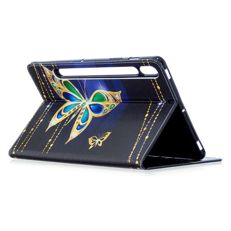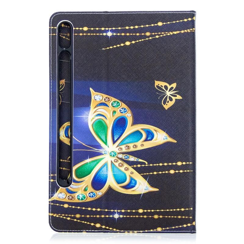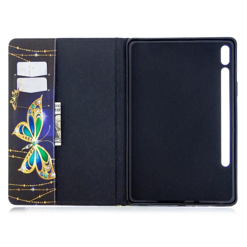 Θήκη δέρματος οριζόντιας αναδίπλωσης με σχέδιο πολύχρωμης ζωγραφικής για Samsung Galaxy Tab S8 / Galaxy Tab S7 T870 με βάση στήριξης & υποδοχές καρτών & πορτοφόλι (Μεγάλη Πεταλούδα)