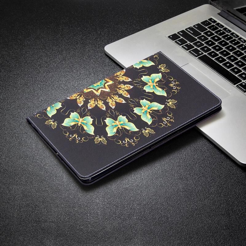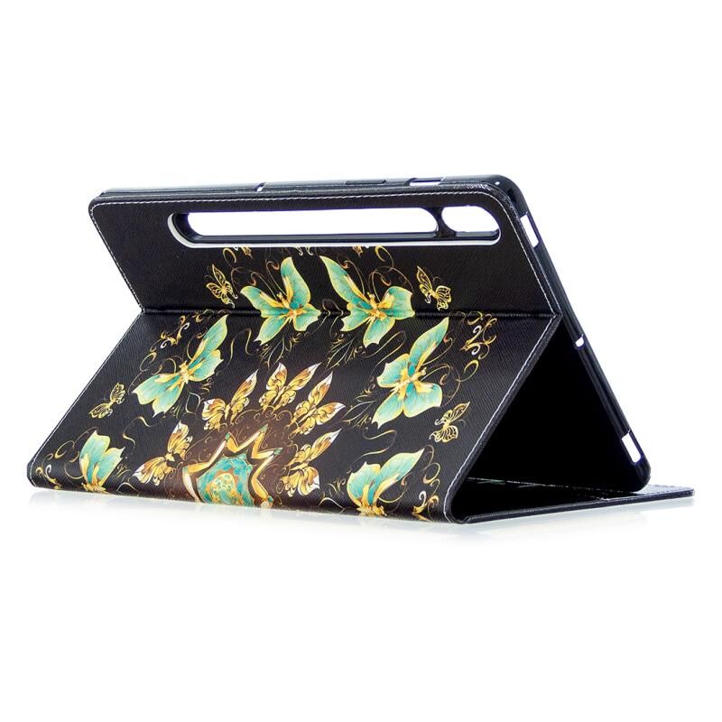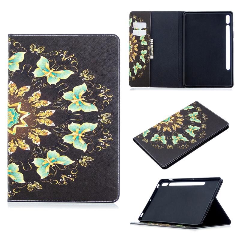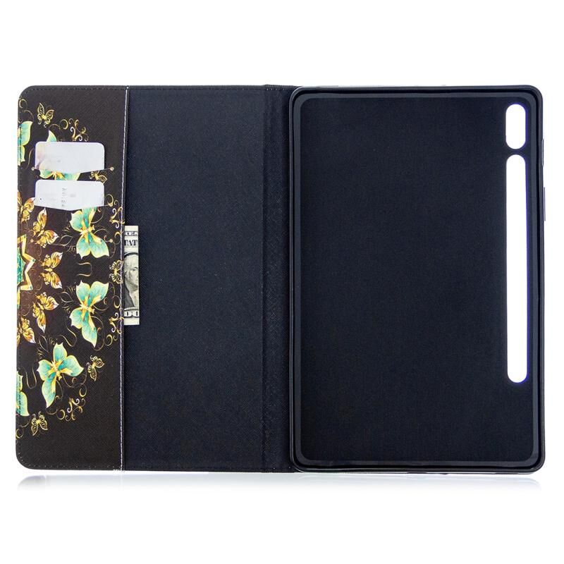 Θήκη δέρματος οριζόντιας αναδίπλωσης με σχέδιο πολύχρωμης ζωγραφικής για Samsung Galaxy Tab S8 / Galaxy Tab S7 T870 με βάση & υποδοχές καρτών & πορτοφόλι (Ημικυκλικό Πεταλούδα)