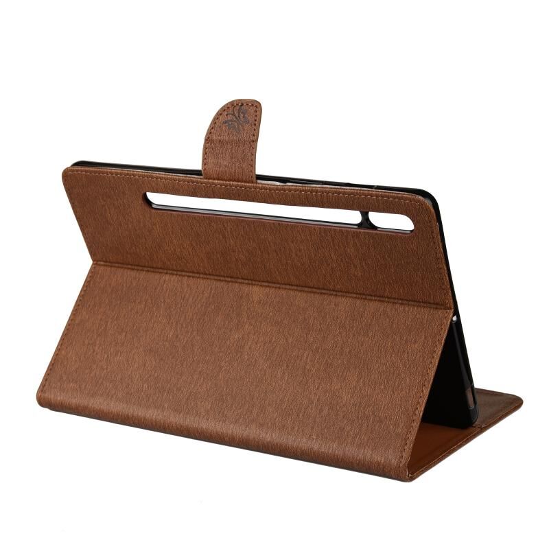 Θήκη δέρματος οριζόντιας αναδίπλωσης με σχέδιο ανάγλυφου πεταλούδας και λουλουδιών για Samsung Galaxy Tab S8 / Galaxy Tab S7 T870 / T875 με βάση & υποδοχές καρτών & πορτοφόλι (Μαύρο)