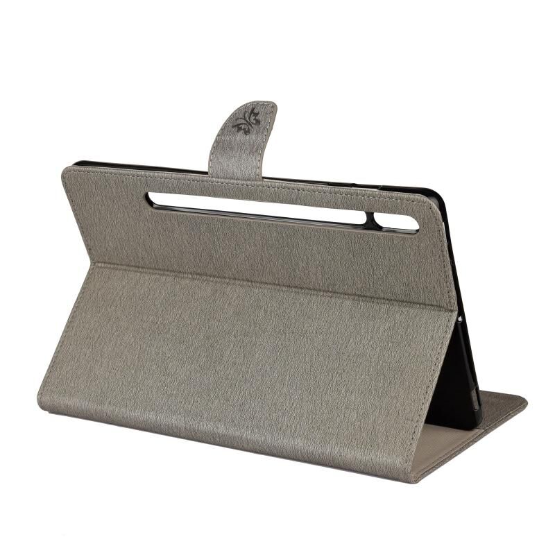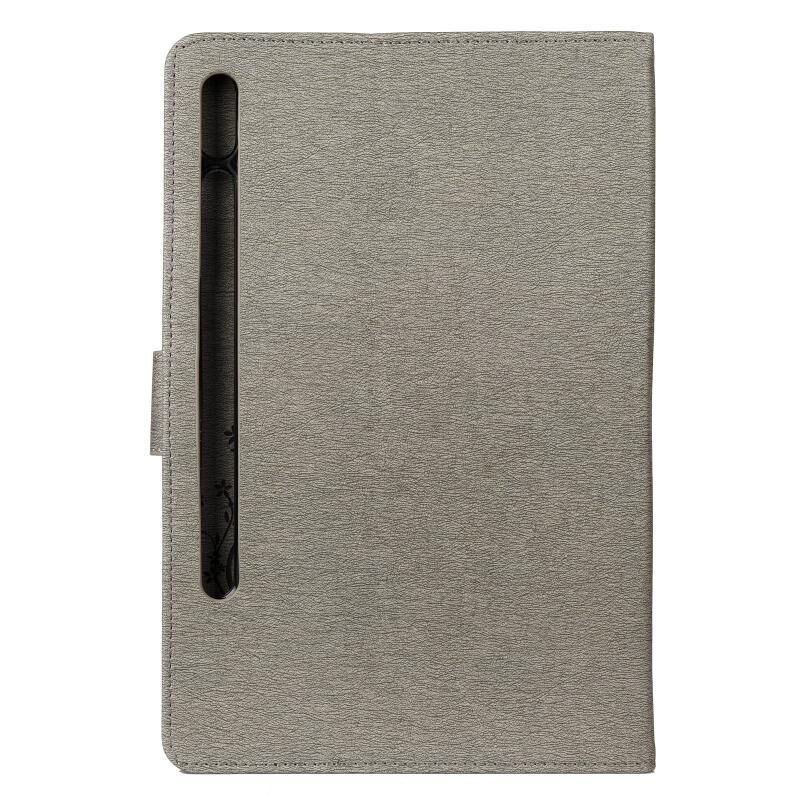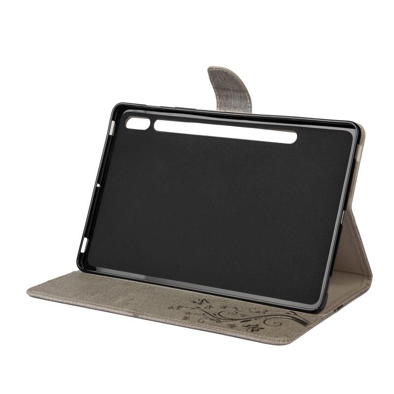 Θήκη δέρματος οριζόντιας αναδίπλωσης με σχέδιο ανάγλυφου πεταλούδας και λουλουδιών για Samsung Galaxy Tab S8 / Galaxy Tab S7 T870 / T875 με βάση & υποδοχές καρτών & πορτοφόλι (Μαύρο)
