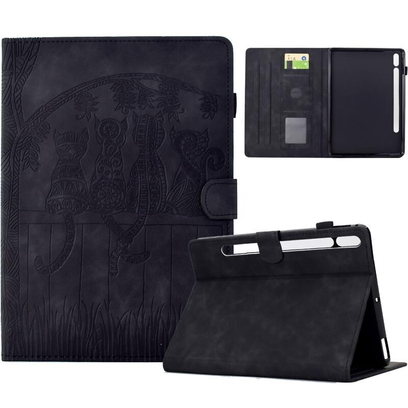 Θήκη Smart Tablet από Δέρμα με ανάγλυφα σχέδια Γάτας για Samsung Galaxy Tab S8 / S7 (Καφέ)
