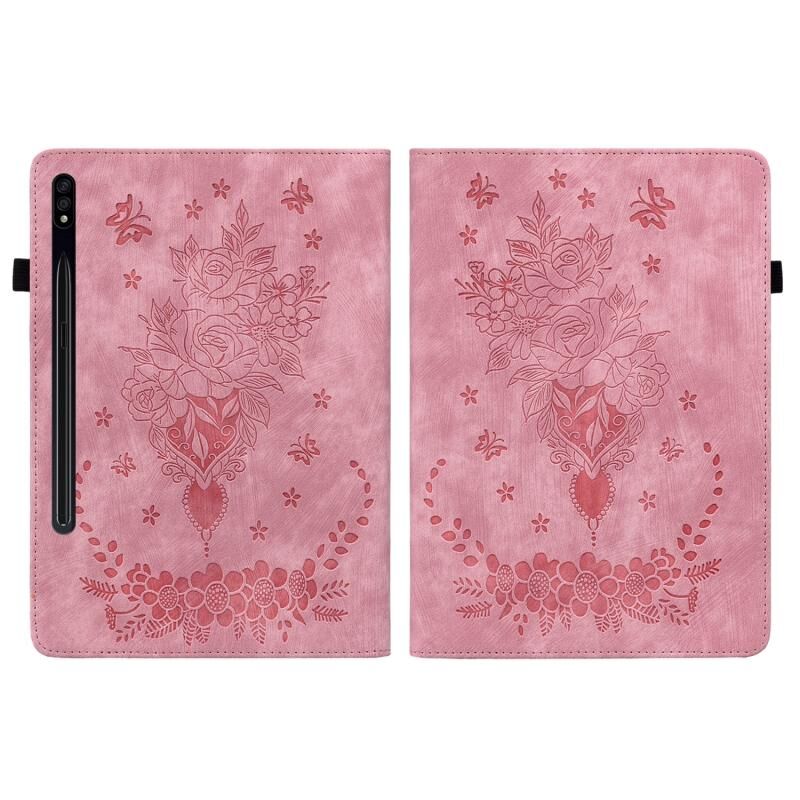 Θήκη ταμπλέτας από δέρμα με ανάγλυφο σχέδιο πεταλούδας για Samsung Galaxy Tab S8+ / S7+ / S7 FE (Ροζ)
