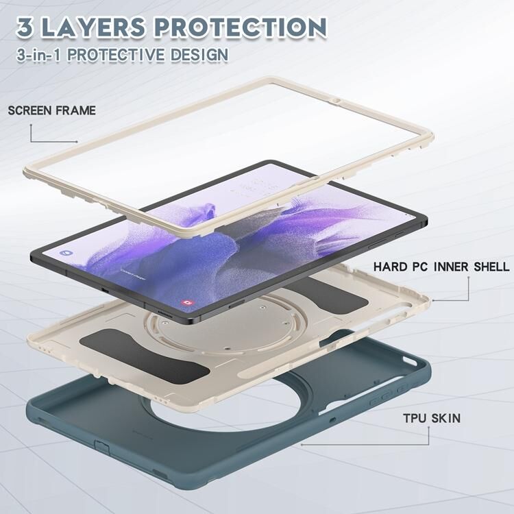 For Samsung Galaxy Tab S8+ / Tab S8 Plus / Tab S7 FE / Tab S7+/S7 FE 12.4 inch T970 Shockproof TPU + PC Protective Case with 360 Degree Rotation Foldable Handle Grip Holder & Pen Slot(Cornflower Blue)