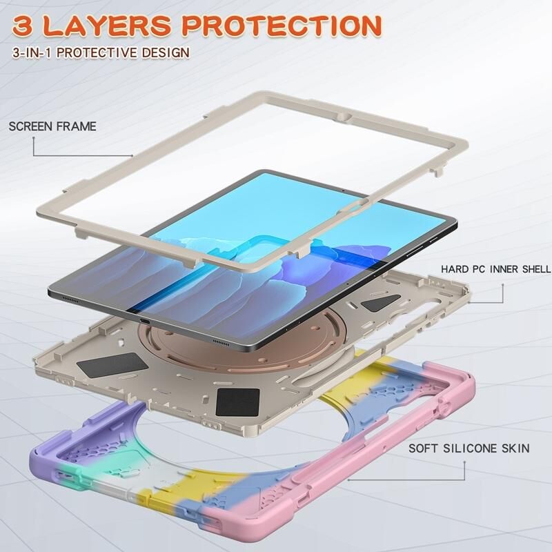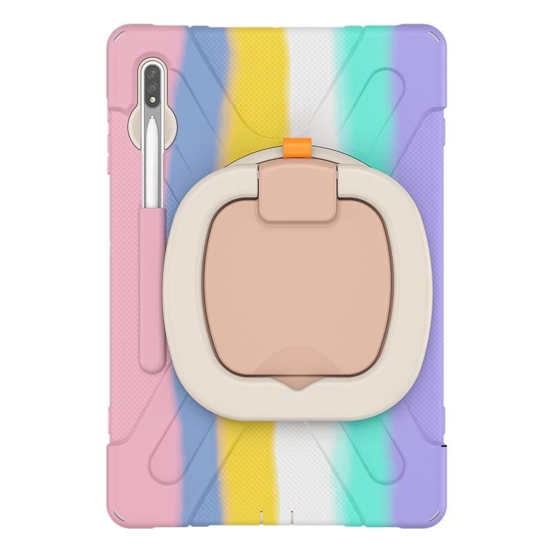 For Samsung Galaxy Tab S8+ / Tab S8 Plus / Tab S7 FE / Tab S7+ T970/T975 Silicone + PC Protective Case with Holder & Shoulder Strap(Colorful Pink)