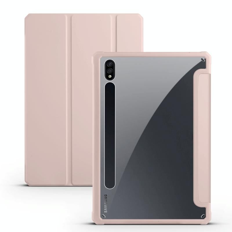 Για Samsung Galaxy Tab S8 Ultra Ακρυλικό 3 πτυσσόμενα Smart δερμάτινη θήκη tablet (ροζ)